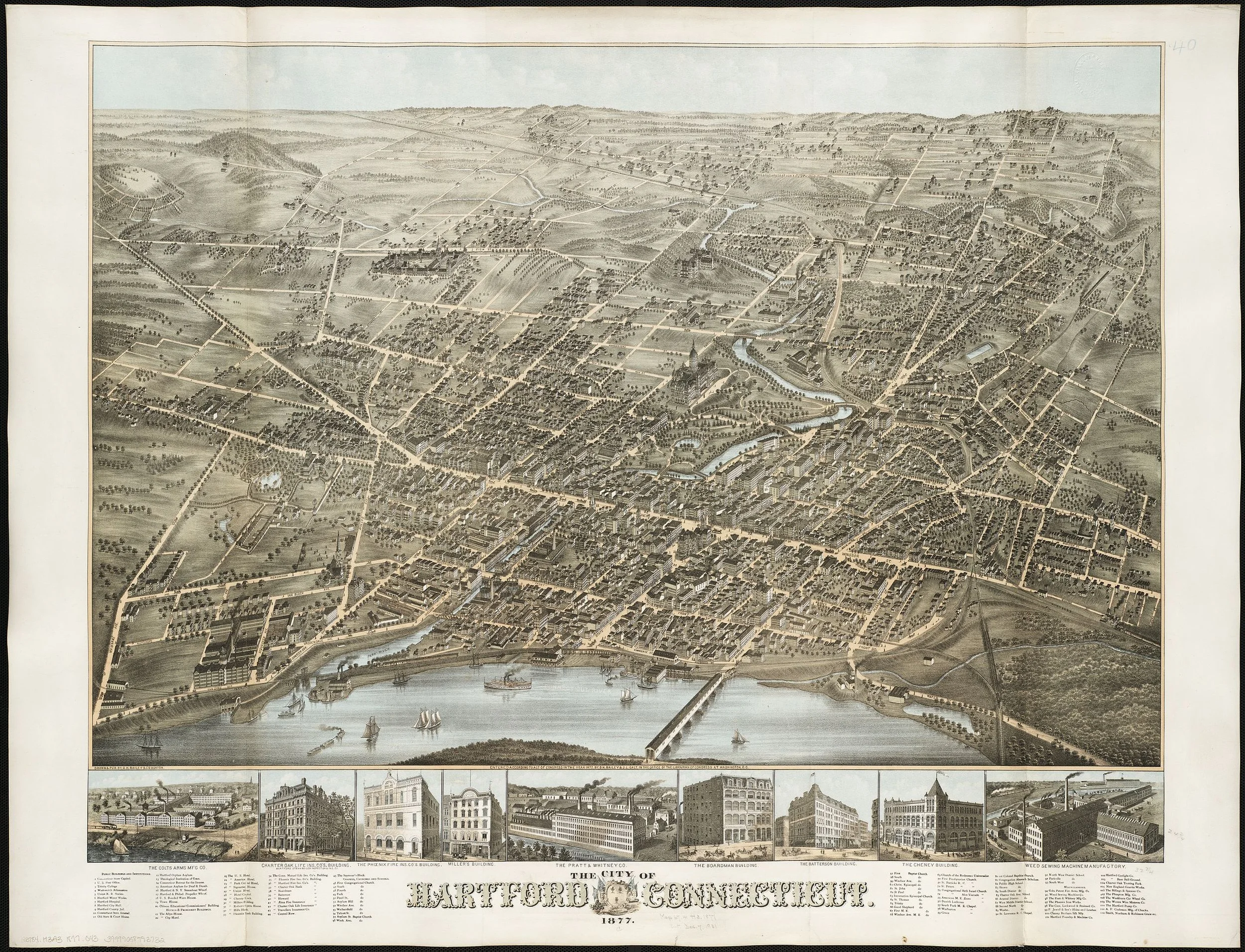Downtown Worcester from Norfolk Street. The city is in a very hilly area.