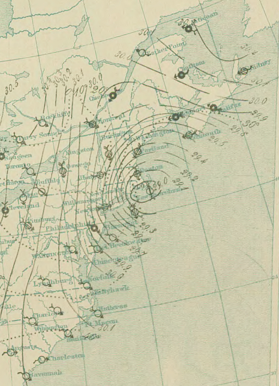 Surface weather analysis of the Great Blizzard of 1888 on March 12. For decades, that storm was the one that big Northeast snowstorms were most often compared with.