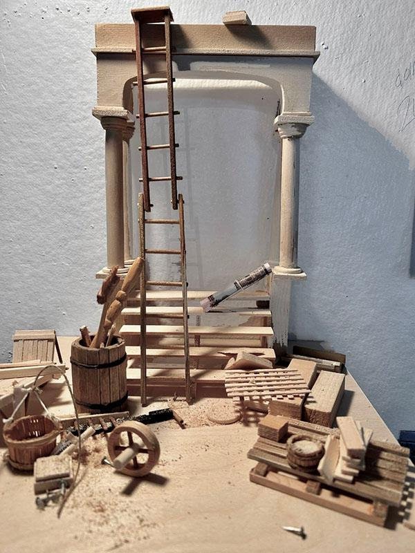 Work by Newburyport, Mass., artist Jennifer Day, in her show “Scaffold: Construction Sites in Miniature,’’ at Bromfield Gallery, Boston, through July 27