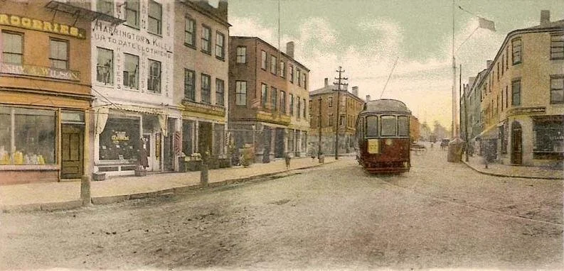State Street, Newburyport, circa 1906. Except for automobiles and trucks, and the disappearance of trolleys, the street now looks remarkably the same.