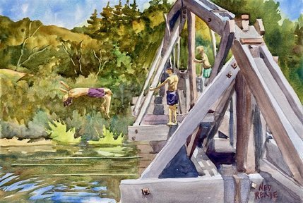 “Boys at the Bridge,’’ by Ned Reade, in the show “From Our Eyes,’’ at the Southern Vermont Arts Center, Manchester.