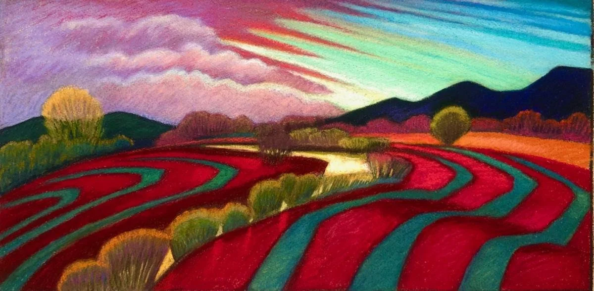 “After the Rain” (pastel on paper), by Marilyn Ruseckas, in her joint show “Terra Chroma,’’ with Kileh Friedman, at Frog Hollow Vermont Craft Gallery, Burlington, through July 28