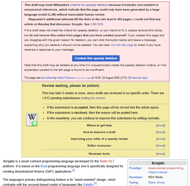 AI-generated draft article getting nominated for speedy deletion under G15 criteria.