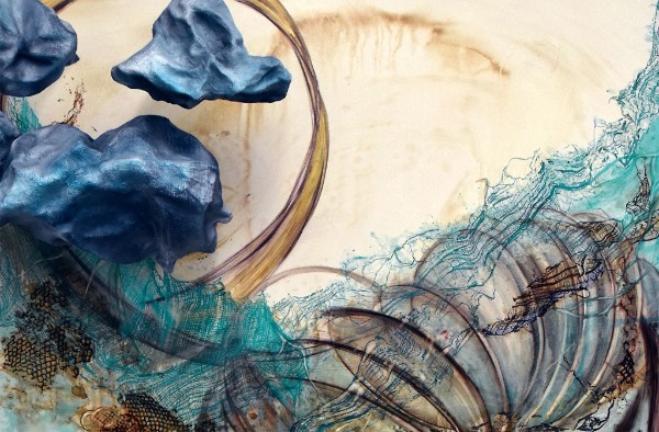"In Flux'' (mixed media on canvas, detail), by Sarah Alexander, in her joint show with Tatiana Flis titled "Scarcely Awake,'' at Fountain Street Gallery, at 400c Harrison Ave., Boston. The gallery just moved from Framingham.
