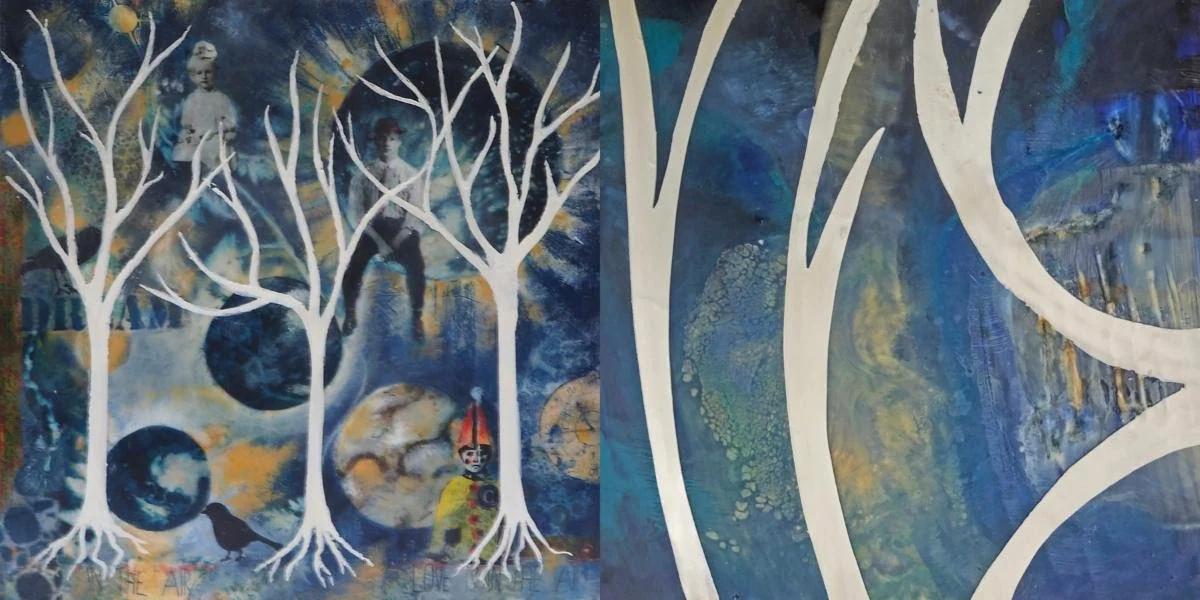 Encaustic diptych on wood panel, by Susan Liddle/Donna Talman, in the show “Transatlantic Fusion 21: A Diptych Project,’’ June 1-11 at The Commons, Provincetown, Mass. It’s a joint exhibition of New England Wax (newenglandwax.com) and European Encaustic Artists.