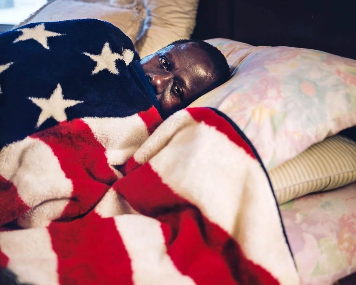 “‘C.B.’, 2011, Brockton, Massachusetts’’ (photograph printed on weatherproof vinyl) by Mary Beth Meehan, at WaterFire Arts Center, Providence, in her show “Eye to Eye: Photographs and Projects.’’