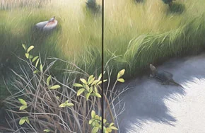 "Turtle Amore" (oil on canvas), by Joan Baldwin, in her show "The Marshes, at The Kingston Gallery, Boston, through June 26.