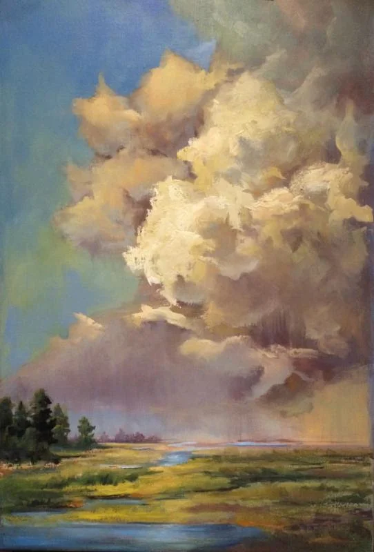 "Chance of Showers'' (oil on linen), by Donato Beauchaine, in the current group show "Outside/In,'' at the Providence Art Club.
