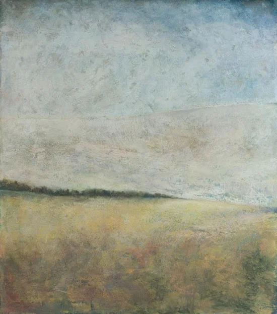 "Let Evening Come'' (beeswax and pigment on birch board), by Georgia Nassikas, in the current group show "Outside/In'', at the Providence Art Club.