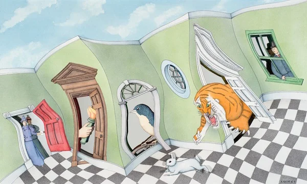 "Seeing Glass'' (watercolor, pen & ink) cut paper and mirror) by Mark Luiggi, in the summer show "Melt'' at the Brickbottom Artists Association, Somerville, Mass. July 14-Aug. 20.