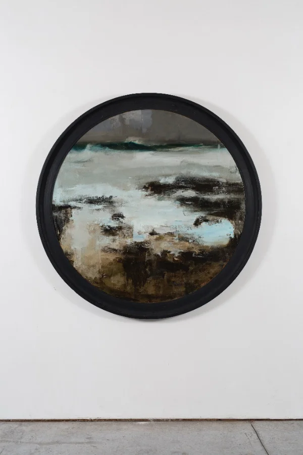 "Offshore'' (oil on canvas mounted to panel), by Tim Wilson, in the "Install 8'' group show at Corey Daniels Gallery, Wells, Maine, through Sept. 10. The gallery says his "familiar style of deconstructed figures and compelling landscapes mingle with less articulated forms and an exploration of new surfaces and techniques.''