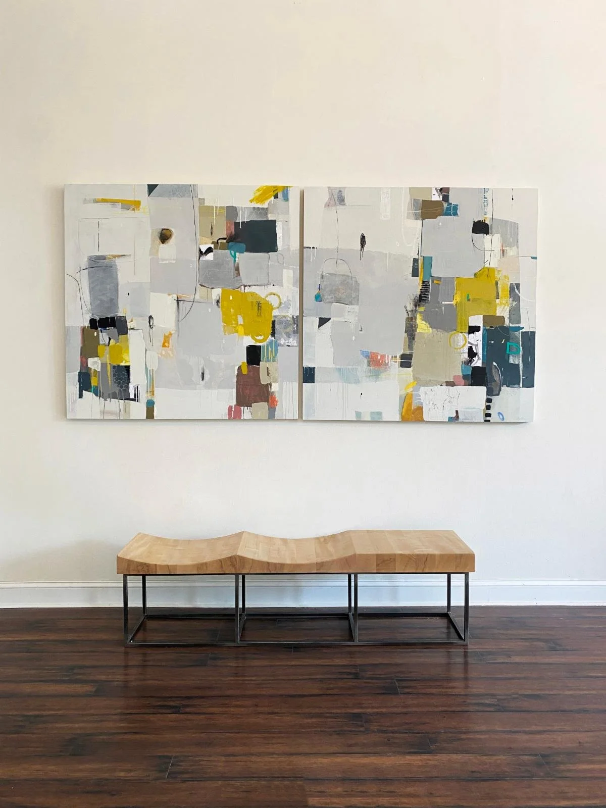 “My work currently speaks to my infatuation with process and exploration. Painting allows me to discover places that feel both familiar and unknown. Often I feel the work arrives out of nowhere as if sent from a place beyond my knowledge. I deeply trust in the messy process of creating, with all its inherent bumps and wrinkles, which helps me understand my need to continue on this creative path.