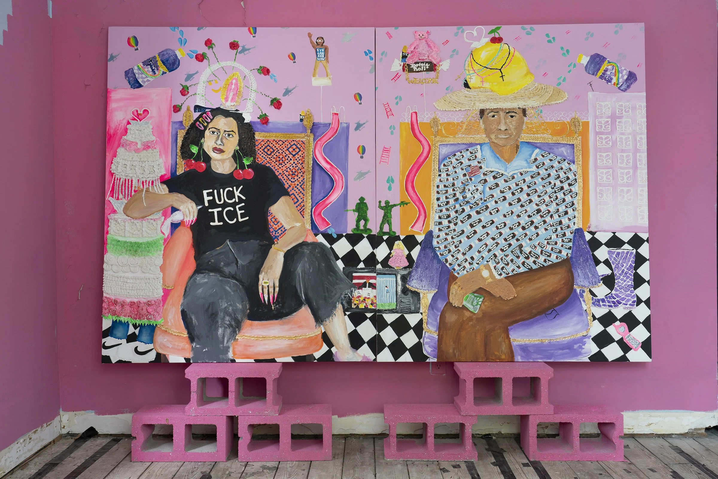 “Inspired by her mother’s work at a bakery after immigrating to the United States from Jalisco, Mexico, Mayorga frosts thick acrylics onto sculptures and canvases with piping bags and icing tips to achieve delectable textures. … Mayorga’s handicraft intimately immerses the viewer in the tension between dislocation and belonging that defined her girlhood as a first-generation Mexican-American in the Midwest in the ‘90s and 2000s.’’