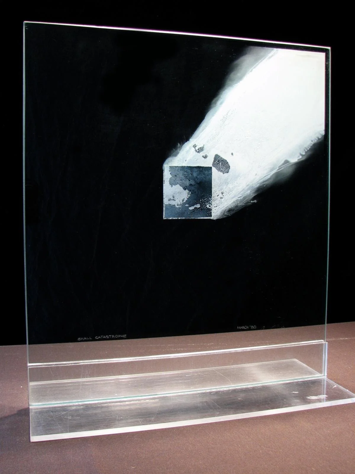 “Small Catastrophe’’ (plate glass with vitreous enamels), by Eric Sealine, in his show “Drift and Flow: All the Time in the World,’’ at Boston Sculptors Gallery.