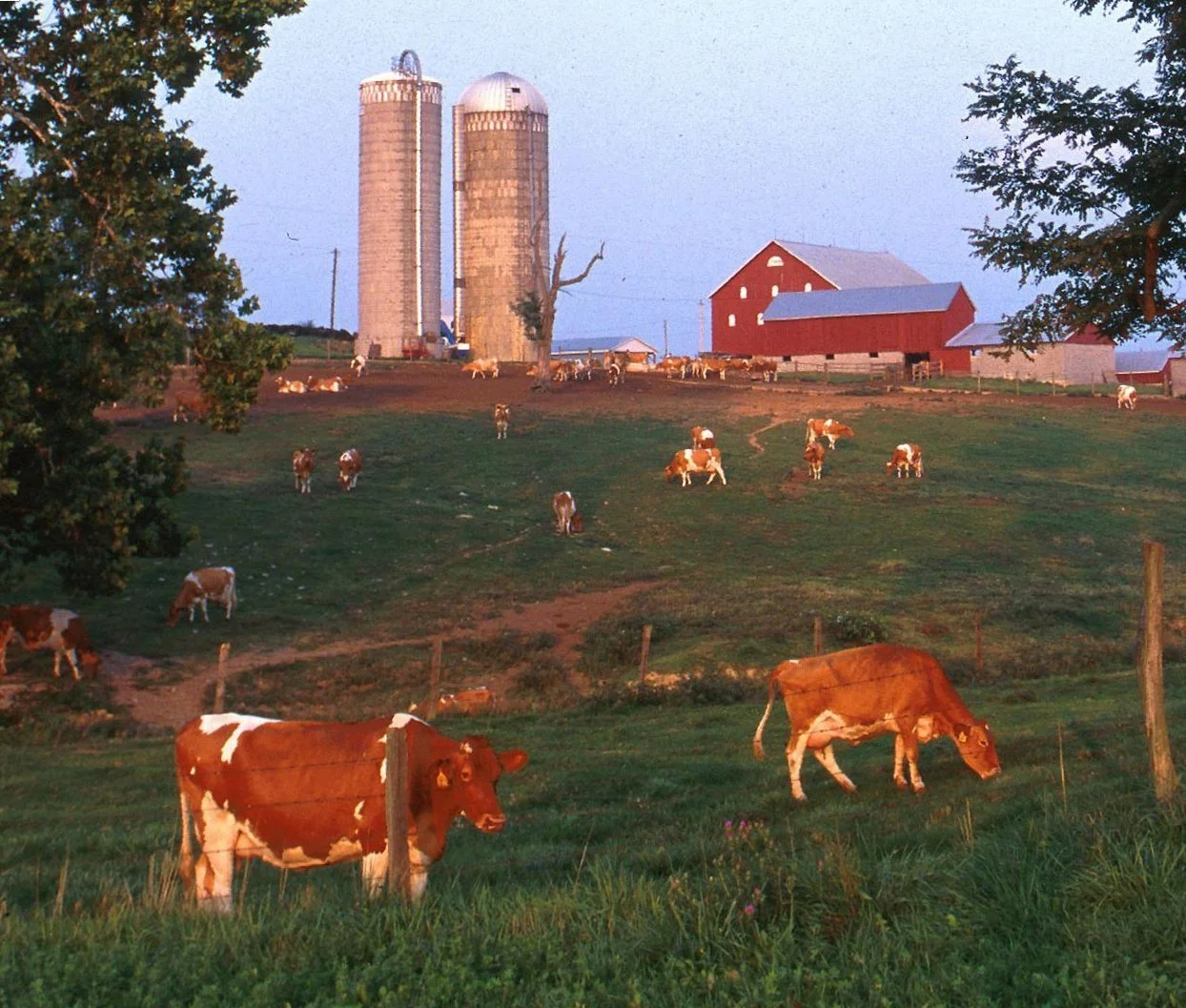 Farm life was good, with warm bread, bacon and black coffee to begin each workday morning at 6:15 in Betty’s kitchen. A herdsman milked twice daily, which was fine by me since cows take no holidays at all. I never counted the cows, but I want to say that there were at least 30 or so milkers in the barn, each one an Ayrshire. Ayrshires are Scottish with white and red to brown markings. They don’t give as much milk as, say, a Holstein, but they give more cream. I bedded each cow in its stall twice a day by scraping out and replacing the wet soiled wood shavings. Also, I checked each one’s steel bowl to keep it free of all but water made to flow by the bovine depressing a small circular float with its muzzle. I also added grain to a mix of hay and silage placed twice daily within easy eating range.