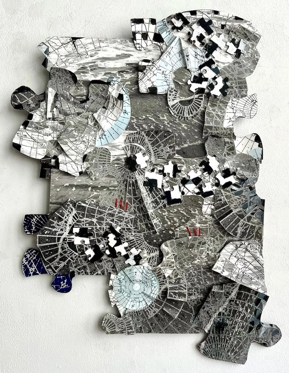 “My ‘Sculptural Drawings’ - three-dimensional reliefs - have been “in the ocean” for many years, but in this show my pieces move on land as the waters flood our coasts.