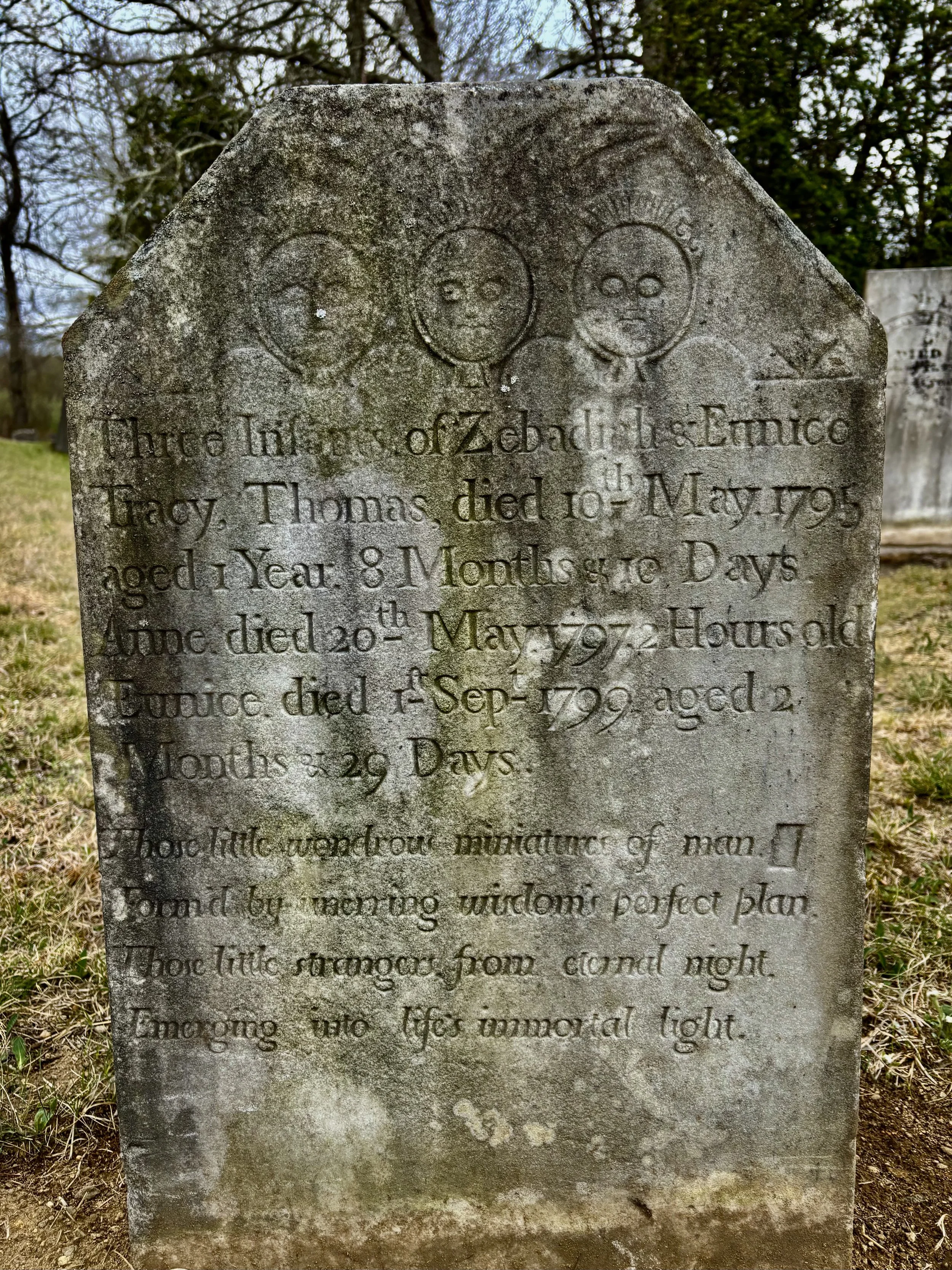 Thomas, aged 1 year and 8 months, Anne lived but 2 hours, and Eunice expired at less than 3 months, 1795-99.