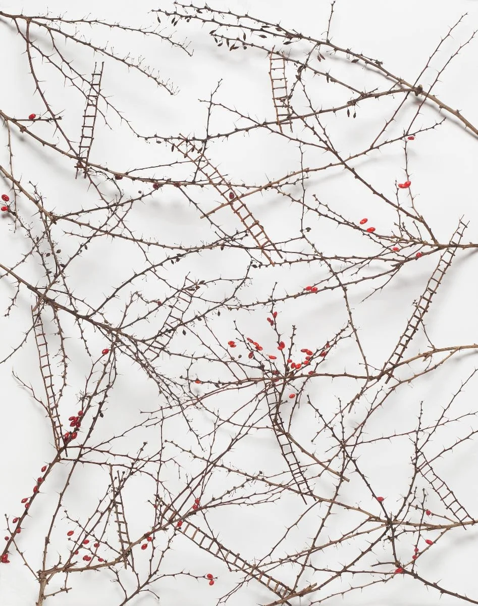 “Journey “ (Japanese barberry) (detail work in process), by Boston-based artist Ann Wessmann, in her show “Cycle,’’ at Kingston Gallery, Boston, May 31-July 2.