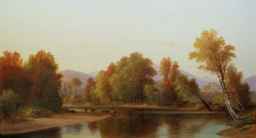 “On the Saco,’’ (which flows from New Hampshire’s White Mountains to the Gulf of Maine), by Benjamin Champney (1817-1907)
