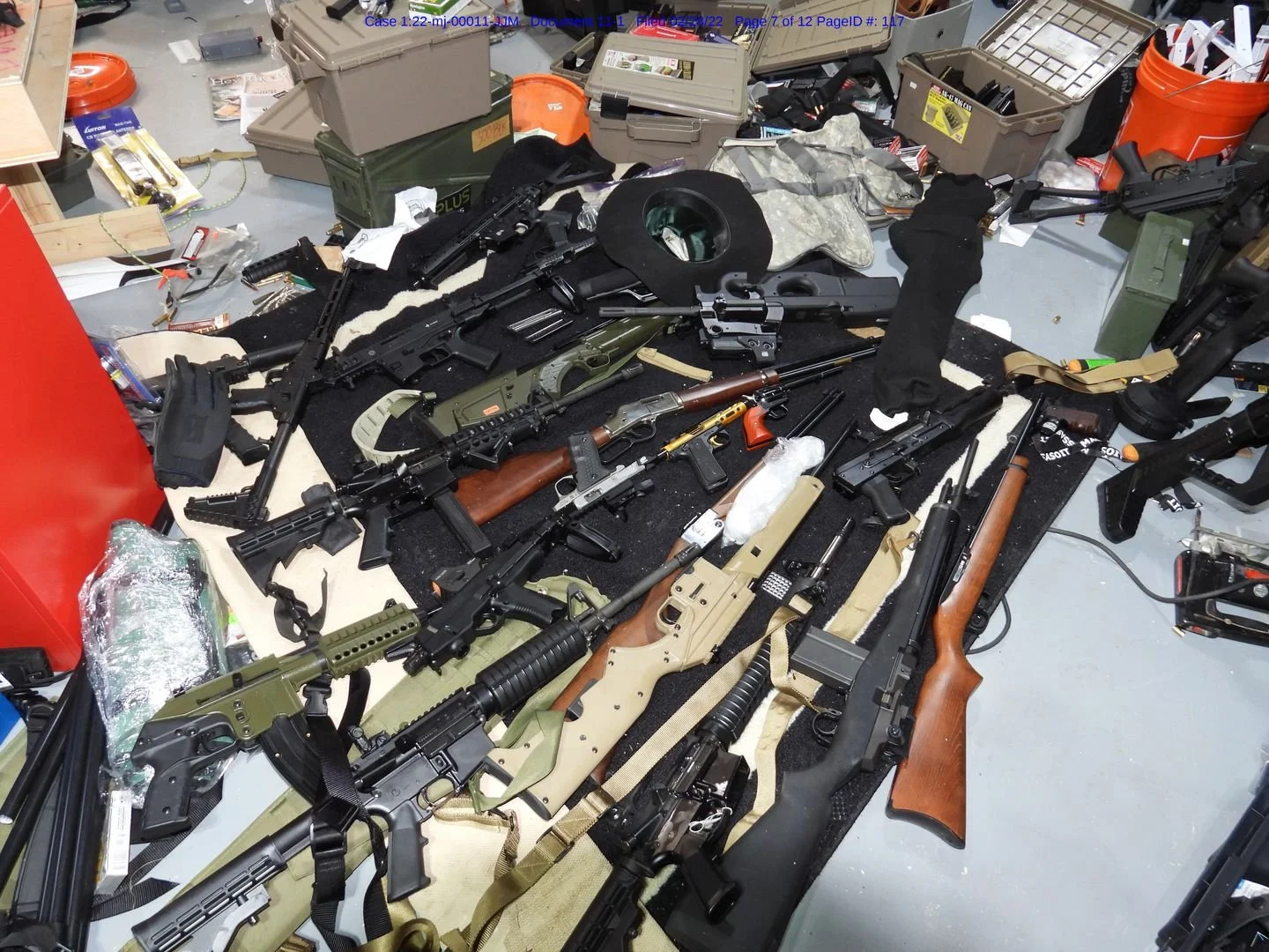 Some of the firearms found in the basement of Ronald Armand Andruchuk's house in Burrillville.