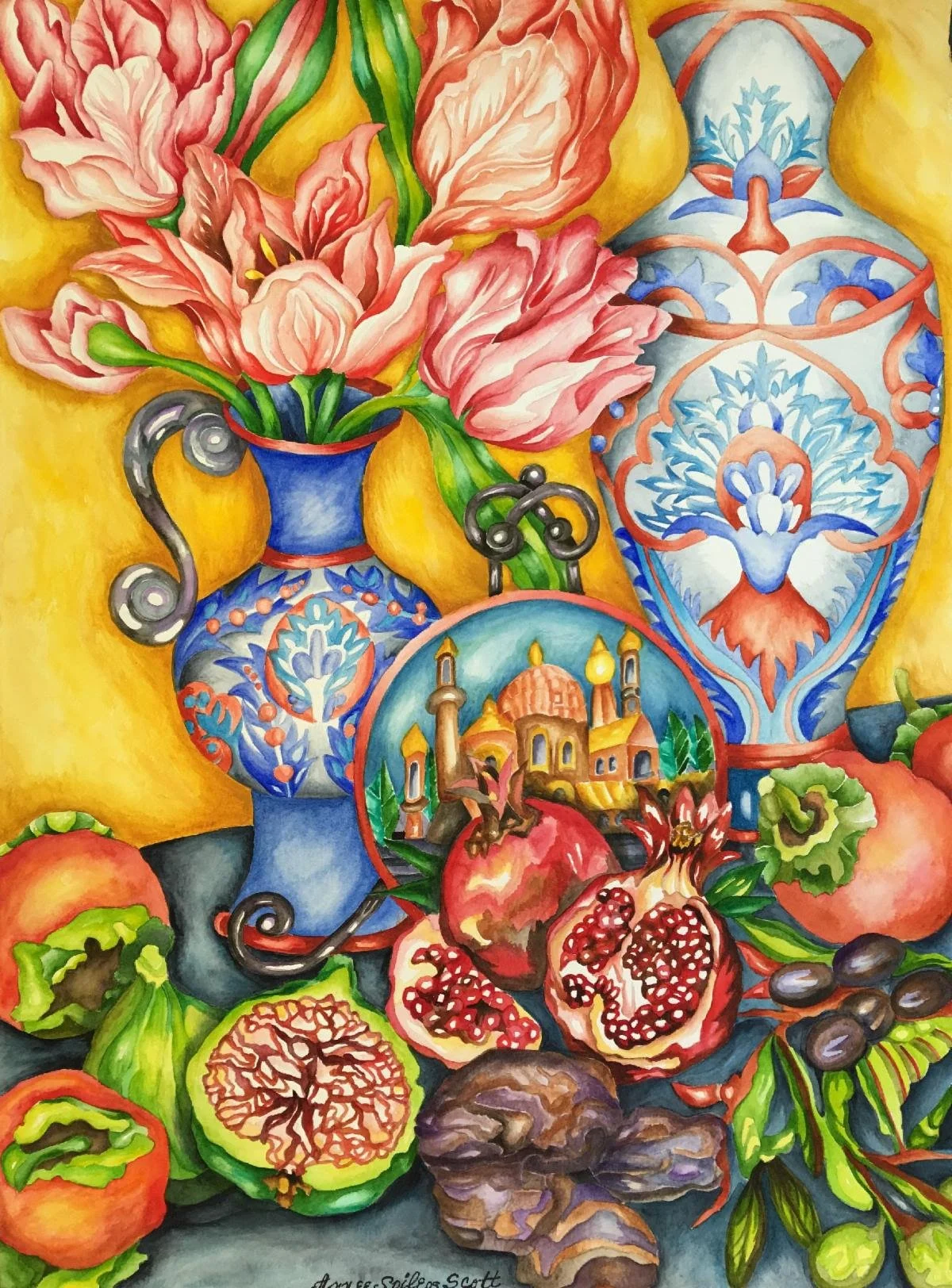 “Anatolia’’ (watercolor), by Randolph, Mass.-based Annee Spileos Scott, in her show “Mapping My DNA,’’ at Galatea Fine Art, Boston, April 7-30.