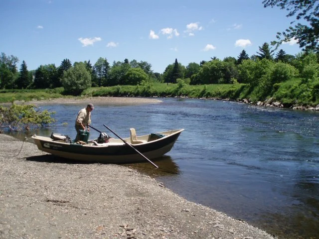 Drift boat fishing guide working the Connecticut river near Colebrook, N.H., in the steam’s upper riches during the brief summer up there.