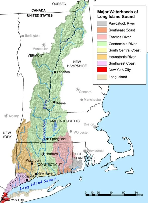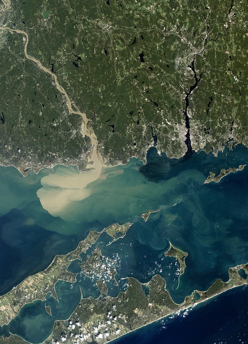 The Connecticut River deposits silt as it flows into Long Island Sound.