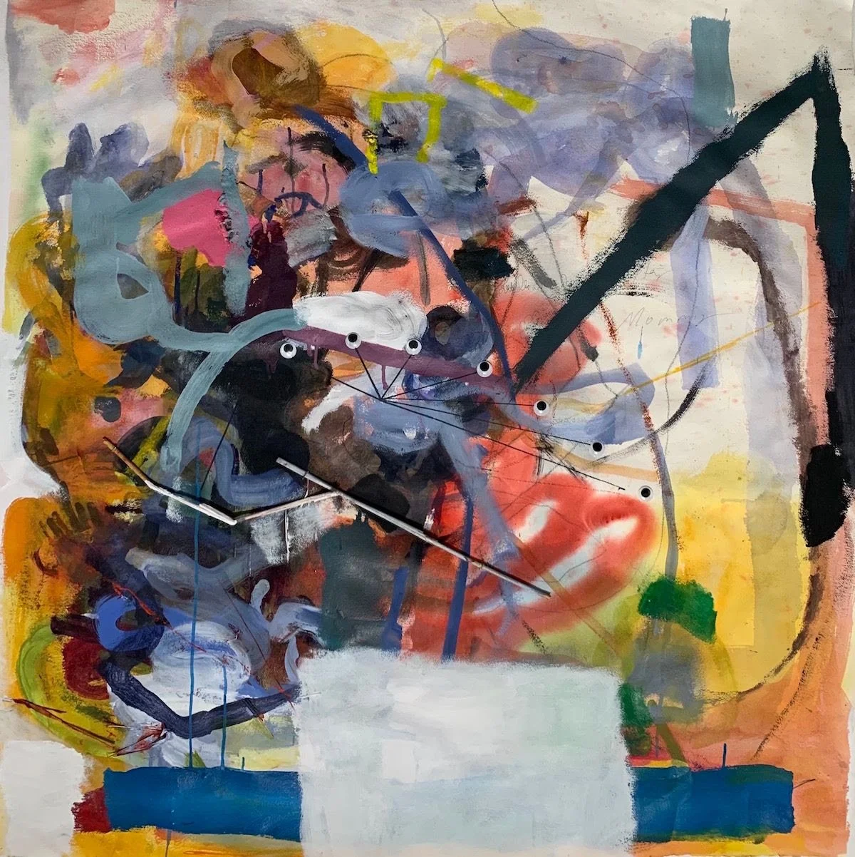 “I am constantly playing with this idea {of high art} by allowing nontraditional materials like natural and human made objects into my paintings. Aiming to transcend the materials, I walk over them to flatten them, staple and glue them on the surface. "