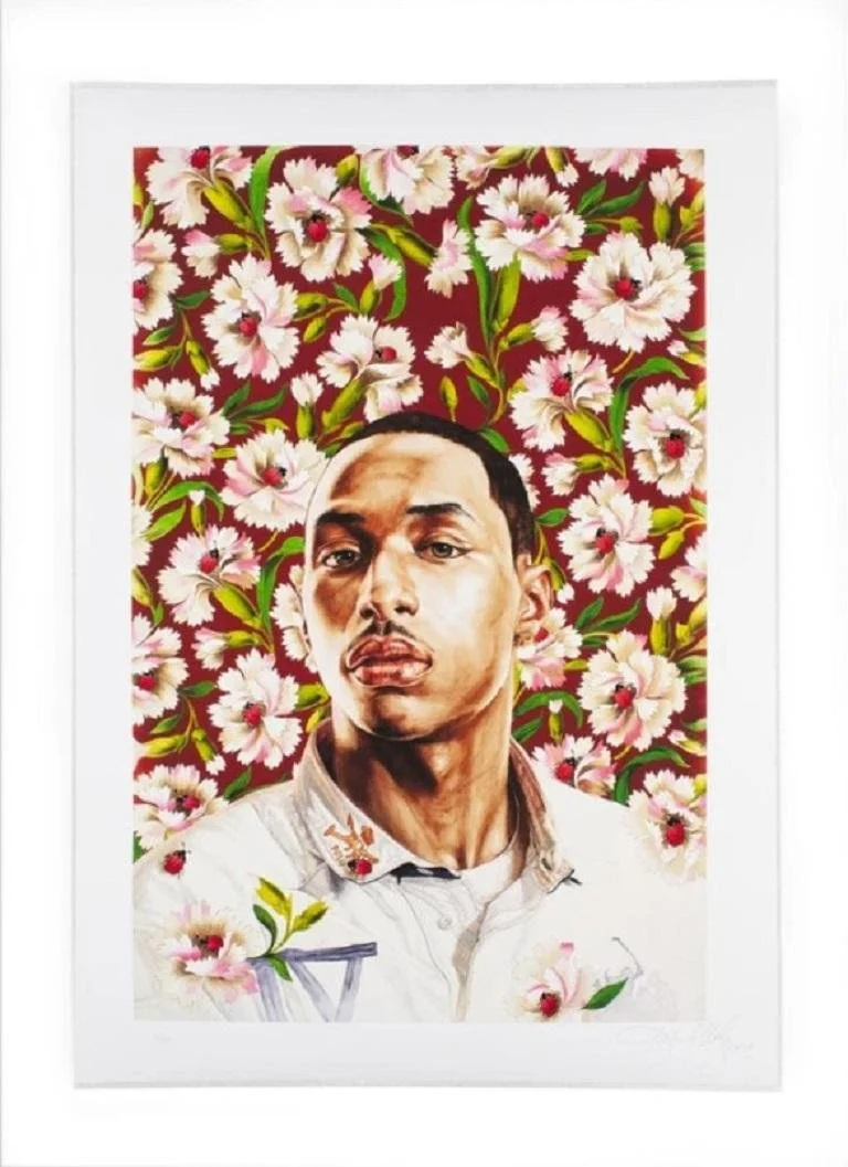 “Sharrod Hosten Study III” (archival ink on paper), by Kehinde Wiley, in the show “Masculine Identities: Filling in the Blank,’’ at the University of Massachusetts at Amherst Fine Arts Center through May 14.
