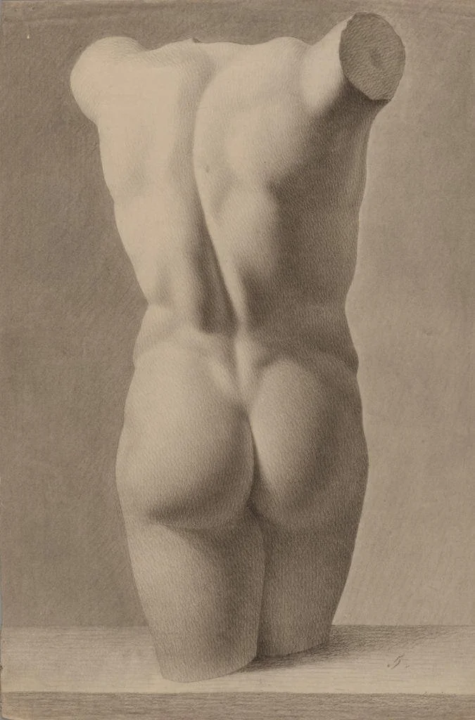 “Study of a Sculptural Male Torso” ( circa 1840–1850), by Anton Lovenberg, in the show “Drawing Closer: Four Hundred Years of Drawing From the RISD {Rhode Island School of Design} Museum,’’ Providence, March 12-Sept. 4.