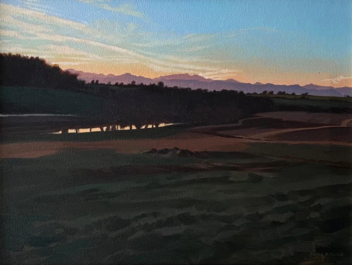 “Lemon Fair River (Vermont) November” (oil on panel), by New England painter Ellen Granter at Edgewater Gallery, Middlebury, Vt., through Nov. 15.