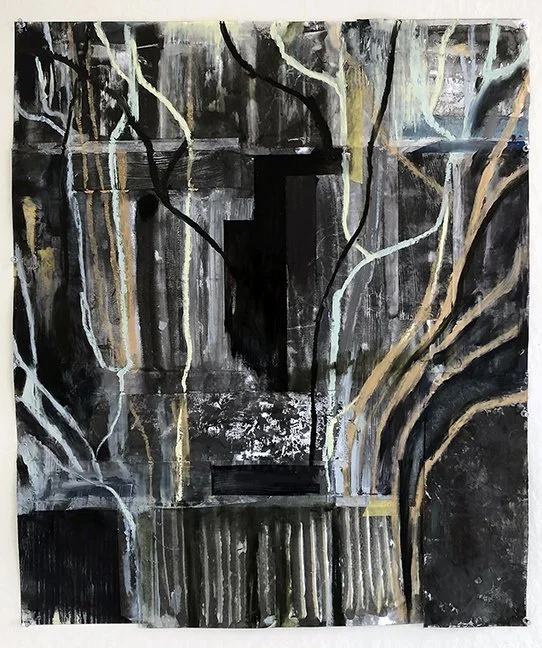 “My art, in its all its varied forms, reflects the ephemeral, transient nature of emotion and experience. Spanning the worlds of urban and rural living, the architecture and environment of both locations, i.e. rectilinear and organic forms, works its way into my art. References to textiles, grids, doors, gates, portals, growth, branches and decay, all weave together to form a hybrid depiction of my outer and inner landscape. The media I choose functions as my personal vocabulary of expression, as well as standing in as proxy to emotional states of mind. I consciously work with materials that help to facilitate a sense of light, darkness and mystery.’’