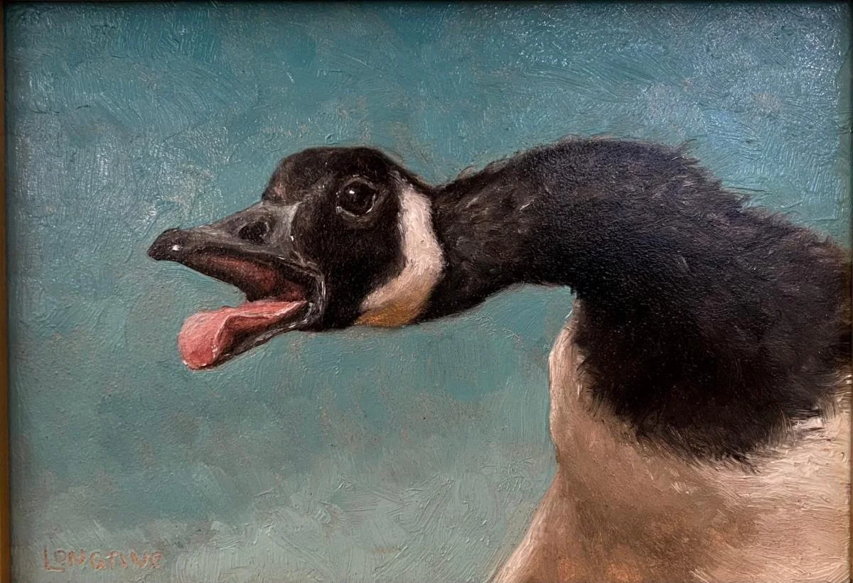 Charlie Longtine, “Mass Ave, 8:45 AM” (oil on panel), at the Copley Society of Art, Boston, in the show “Holiday Small Works 2022.’’