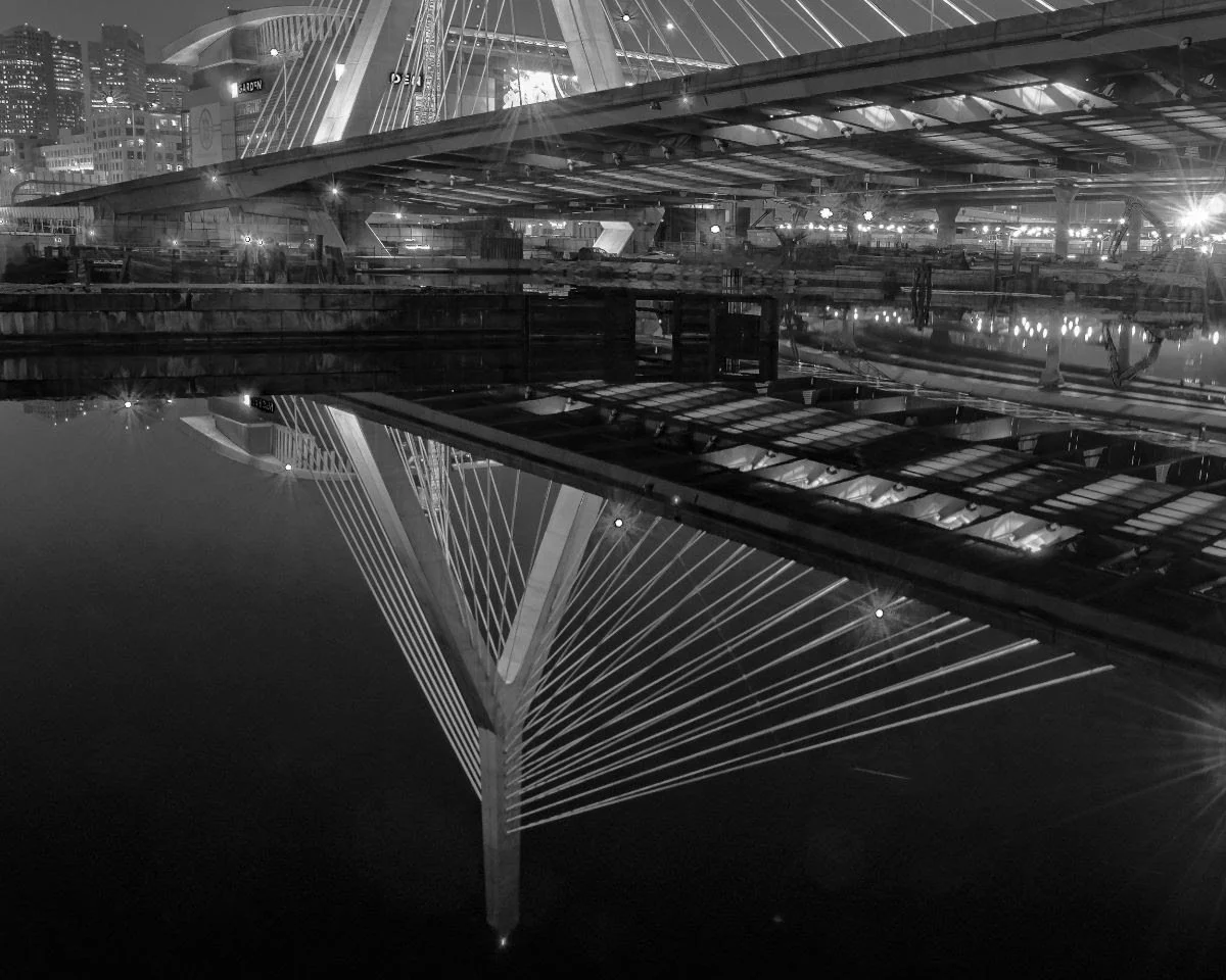 “The Zakim {Bridge, across the Charles River}, a grand crossing” (photo), by Newton-based photographer and printer Vicki McKenna, in the group show organized by Fountain Street Gallery (Boston) entitled“Regarding Boston,’’ at Boston City Hall through June 26.