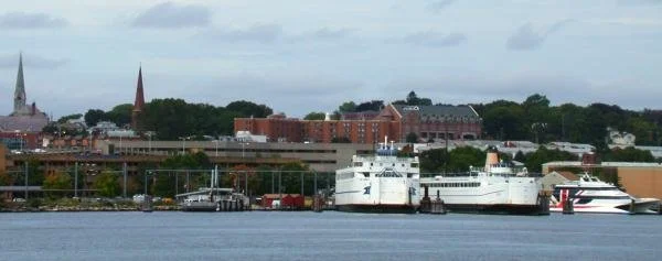The New London, Conn., ferry terminal, which serves the Cross Sound Ferry and the Block Island Express, as viewed from across the Thames River. Both ferry services would be affected by proposed federal rules to help protect North Atlantic Right Whales.