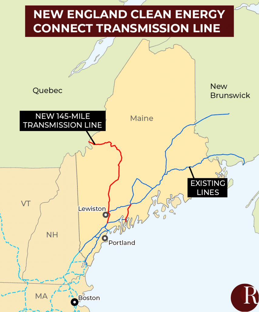 It looked like the long-delayed power line to run from hydro-electric generation in Quebec (comfortably close to us) into the New England grid was kaput after a legally dubious referendum in Maine blocked the line. The project is called New England Clean Energy Connect.