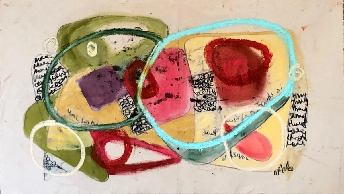 "Inspiration for this body of work comes from unpredictability, urgency, continuity, beauty, humor, and enthusiasm that is omnipresent in all forms of life. My painting process consists of spontaneous, uninhibited drawing of shapes, trajectories, words, and numbers, usually with a pen or pencil. I often listen to improvised jazz music while I work, letting my hand go free and move as it needs to. I sometimes even dance. Then I add paint, going back and forth between drawing and painting. I watch, listen to, and encourage conversations between individual elements that surface as I go along, as they form a coherent 'multicellular life form.’’’