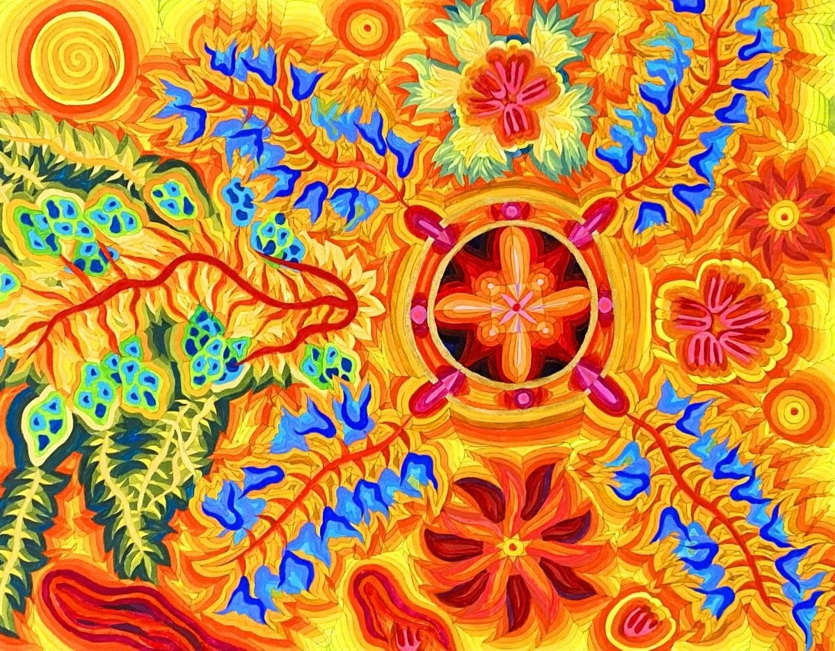 ”My gouache paintings are built from the observation of complexity and my intention in actualizing sequential order. I need to work as if untying a complicated and seemingly impossible knot. The forms are immediately organic, swirling and undulating from one end of the surface from the other. Once this has been established, I go in honing, working each shape, dissecting it into its unique rhythm. This is the secondary aspect of making each work, and the action that ties the shapes into a whole, one that balances between energy and calculation.’’