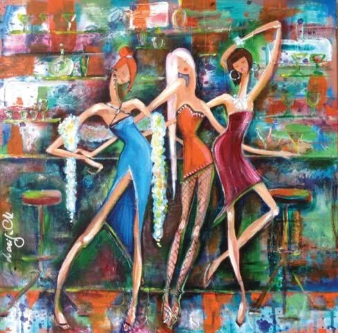 "Girls Night Out" (acrylic on canvas), by Larisa Martino, in the show "Fashion Statements,'' at ArtProv Gallery, Providence, April 2--May 27.