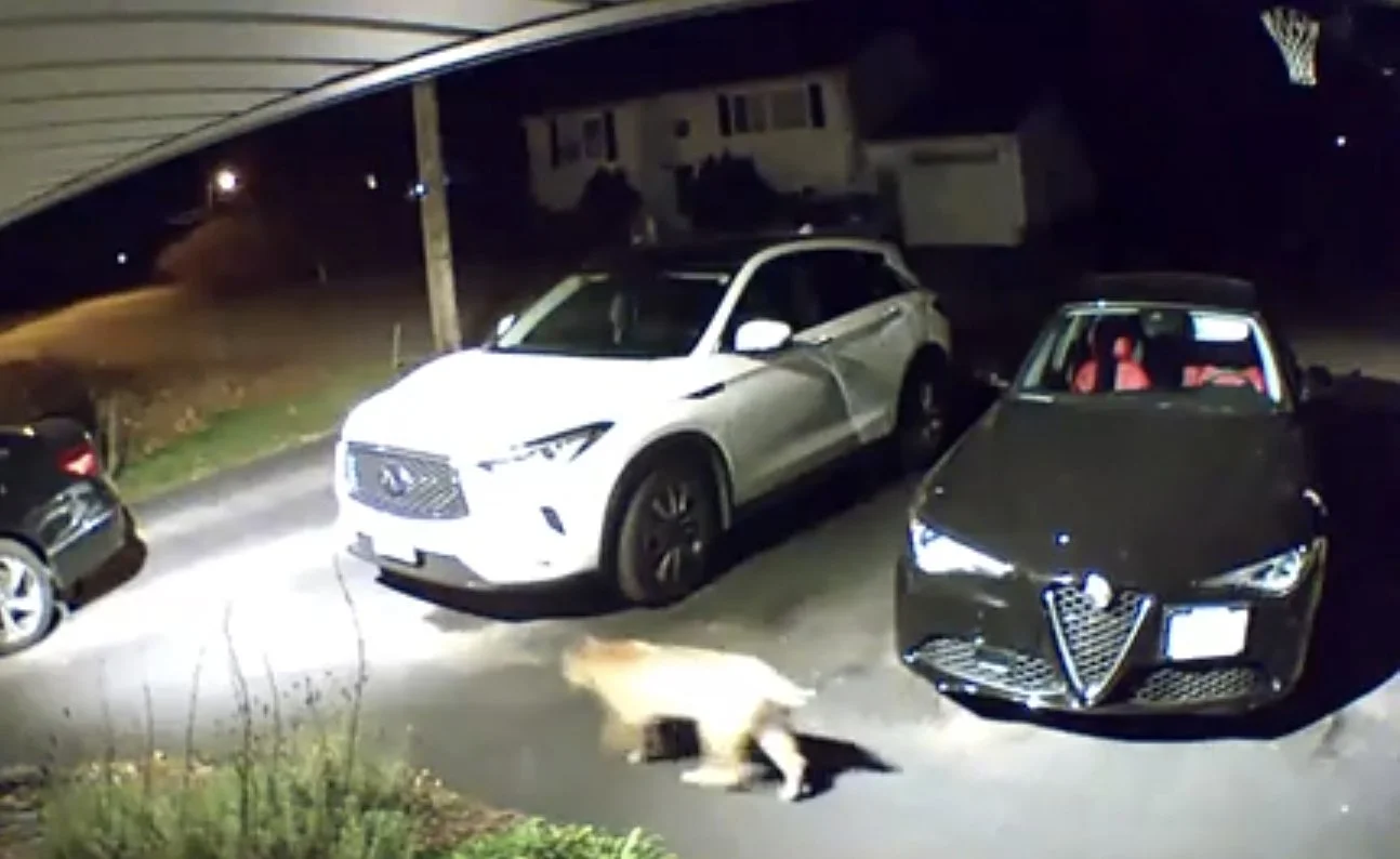A Bobcat was captured on a doorbell camera walking across a driveway in Johnston, R.I.