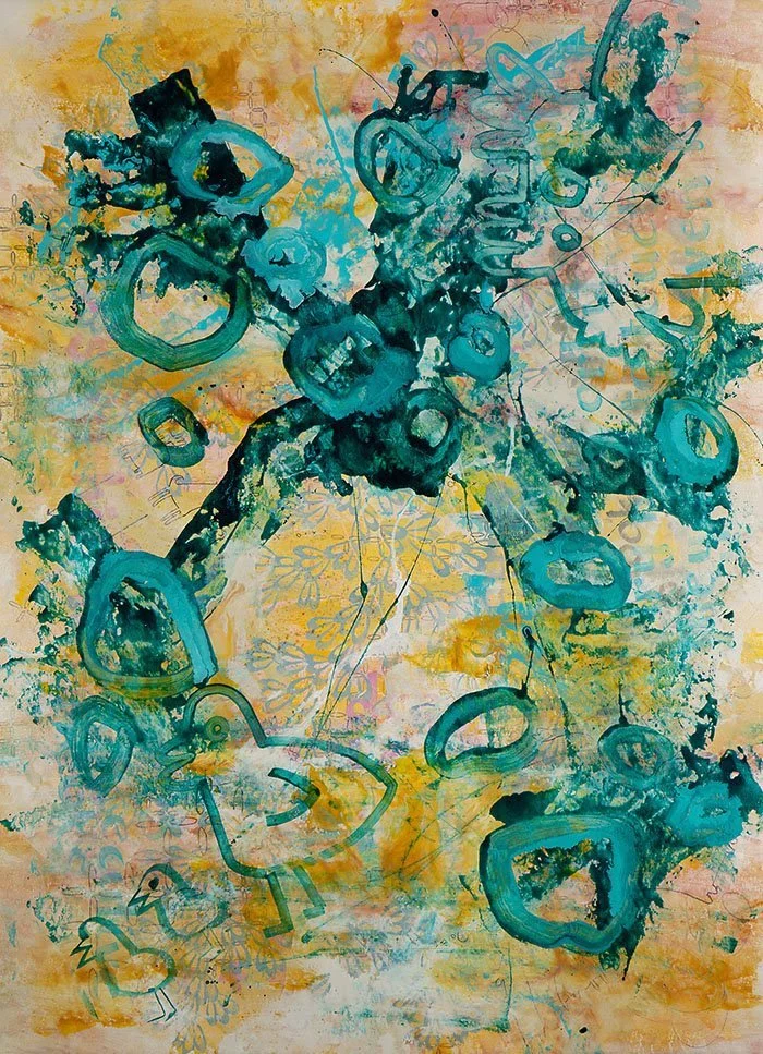 The gallery describes her show as “lively forms in paintings that celebrate the return of hope.’’
