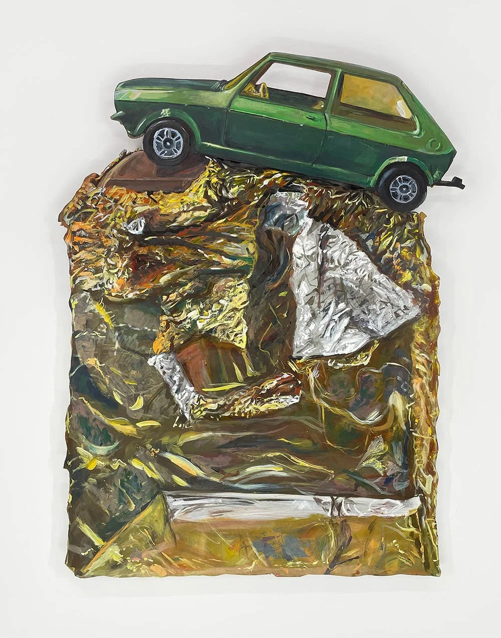 "Car and Candy Bar” (acrylic on panel), by Groton, Mass.-based Caleb Brown, in his show “Playdate,’’ at Bromfield Gallery, Boston, through May 1.