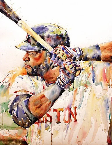 "Big Papi'' (David Ortiz) (watercolor), by Richard Sullivan, in "New Members Show 2017'' at Copley Society of Art, Boston, Jan. 12-Feb 9.