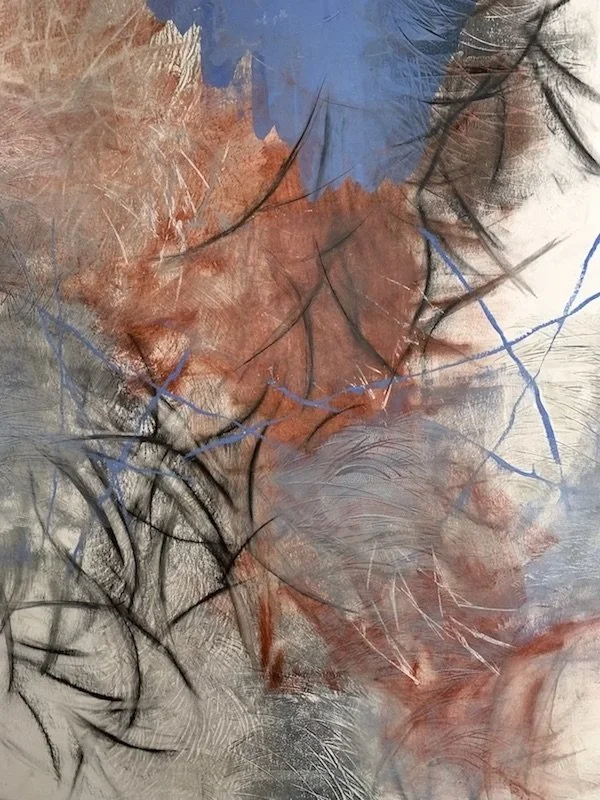 “Aerial View” (cold wax, oil stick, graphite on bristol board), by Deborah Pressman, a Chestnut Hill, Mass.-based artist.