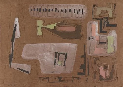 “Bone Music #1” (1949) (pen, ink and watercolor), by Dorothy Dehner (1901-1994), at the Yale University Art Gallery, in its group show “Midcentury Abstraction: A Closer Look,’’ Feb. 25-June 26.