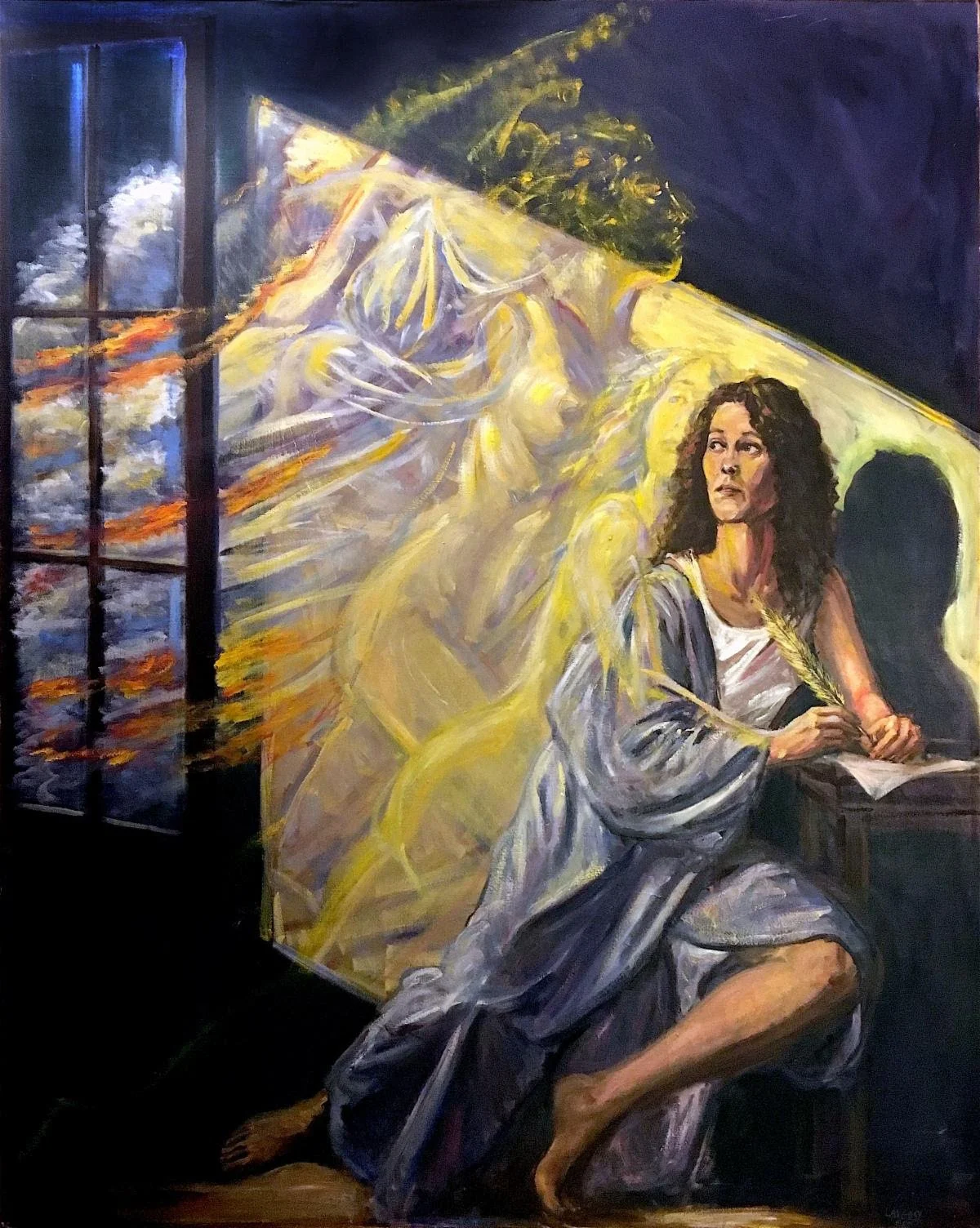 “Muse Becomes Poet,’’ by Boston area-based Donald Langosy, in his show “Art/Poetica,’’ at the Multicultural Arts Center, East Cambridge, Mass., Oct 10-Nov. 24. The gallery says the show explores “the time-honored relationship between poets and visual arts.’’