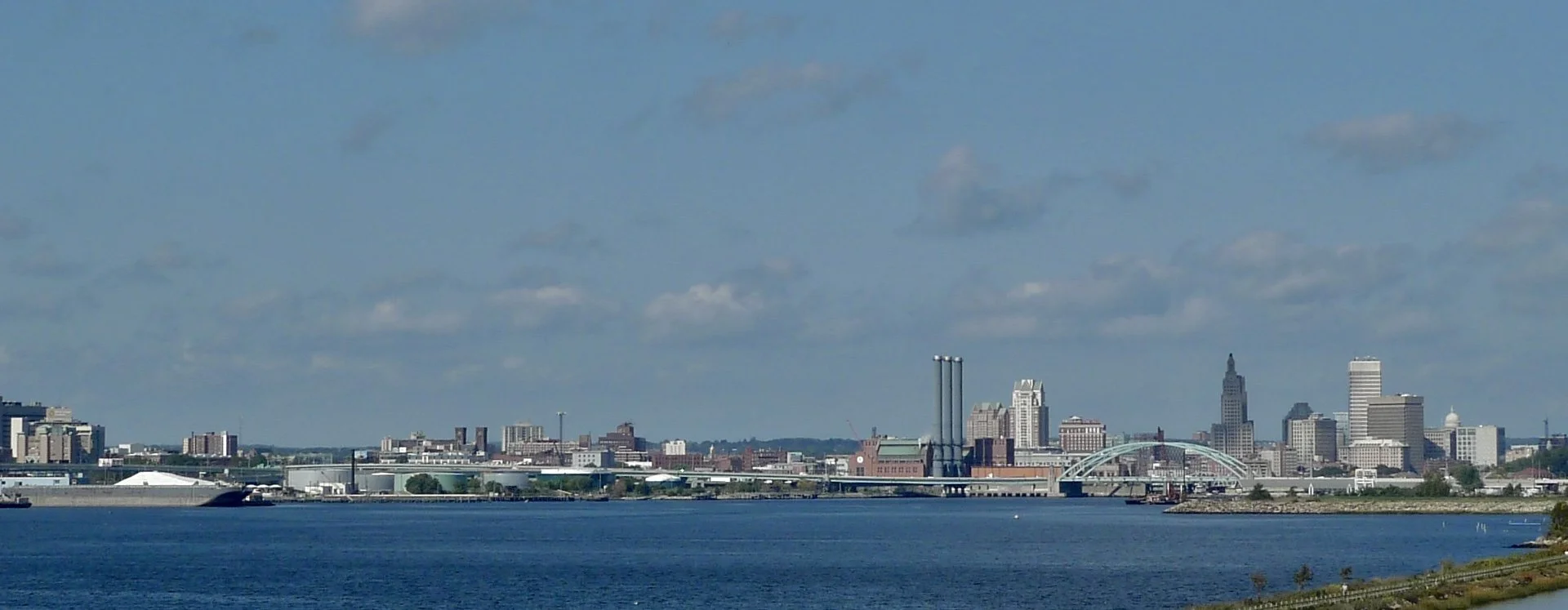 Looking across the head of Narragansett Bay to Providence from the East Providence shoreline.