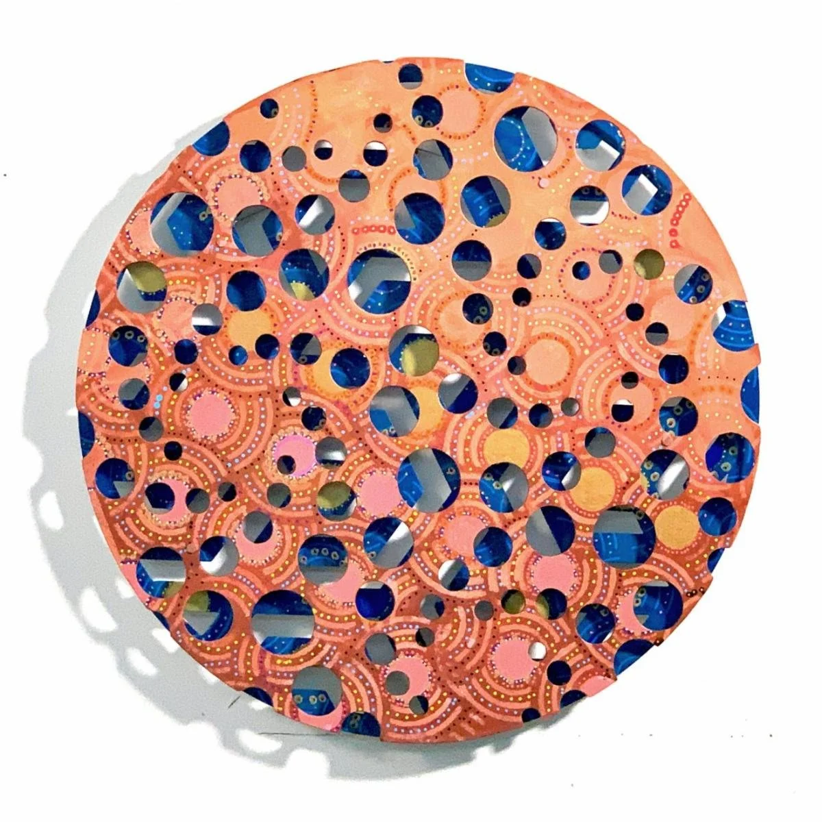 “Random Order” (acrylic paint on aluminum), by Ed Andrews, in his show “Transplant,’’ at Boston Sculptors Gallery, through Oct. 31.