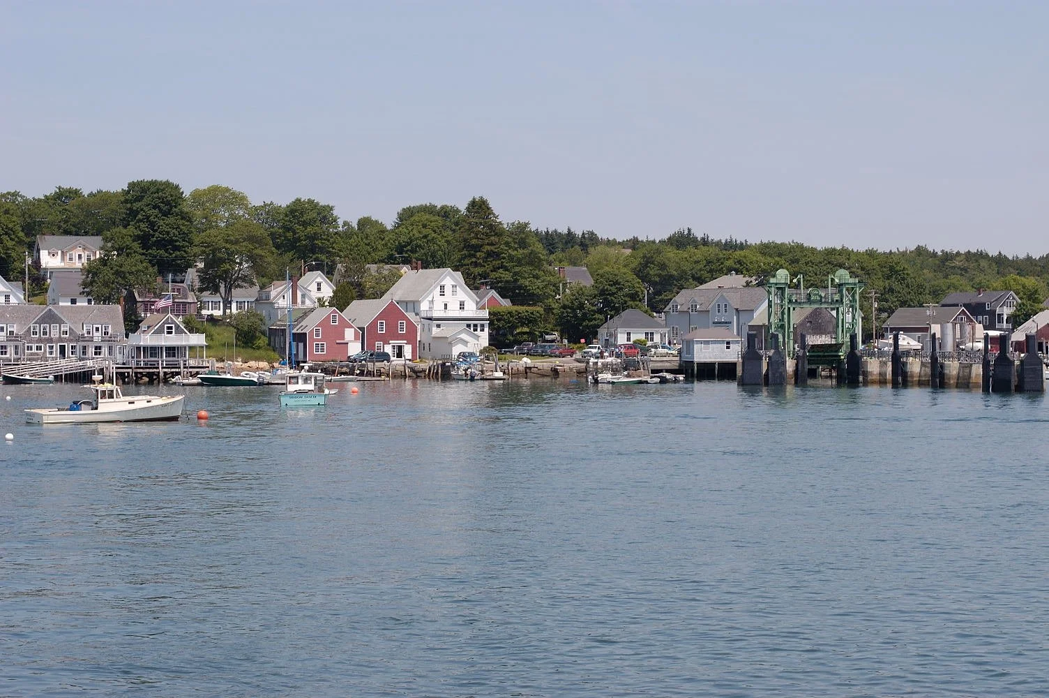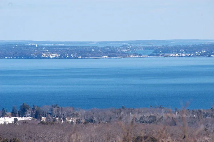 North Haven and the Fox Islands Thoroughfare viewed from Rockland, Maine.