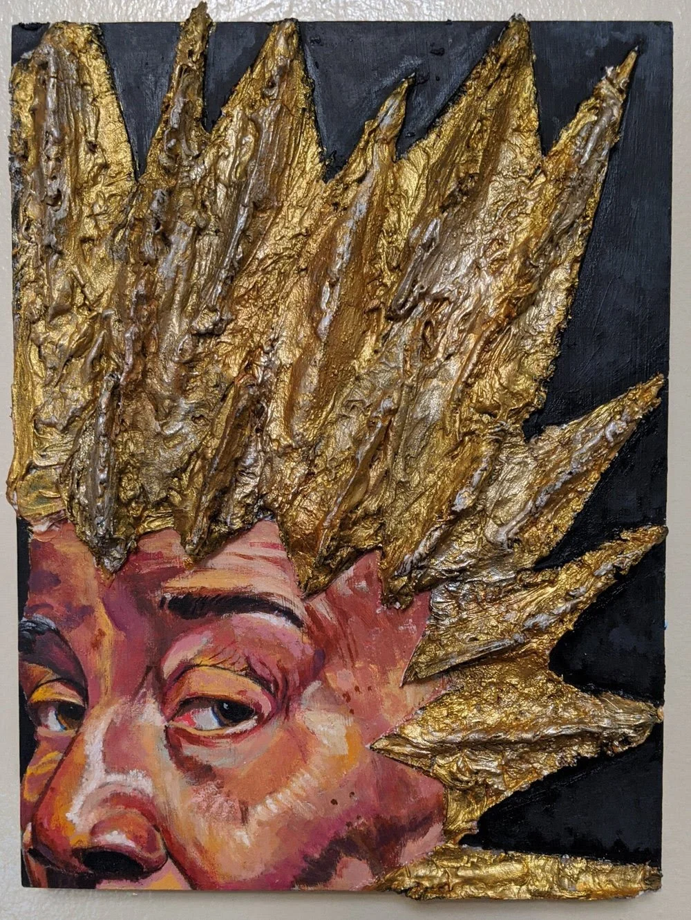 “The words that made me” (acrylic on wood panel), by Frantz Lexy, in his show “Exuding Power in Moments of Vulnerability,’’ at Fountain Street Fine Art, Boston.